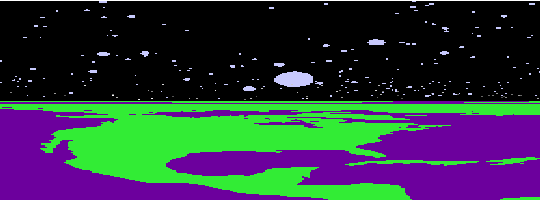 The above computer animated picture depicts how a very compact star would look to a nearby observer. The star pictured is actually more compact that any known except a black hole, so it is only hypothetical. The observer is situated at the photon sphere, where photons can orbit in a circle. To help the viewer better visualize the great distortions created by gravity, a map of the Earth was projected onto the star, and a map of the familiar night sky was projected above. From here one can either look down and see several duplicate images of the entire surface of the star, look up and see several duplicate images of the entire night sky, or look along the photon sphere and see the back of one's own head.