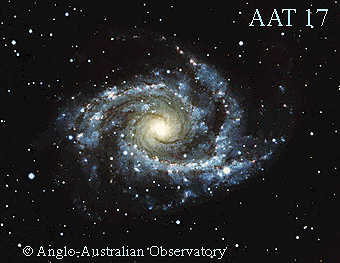 NGC 2997 is a grand design spiral galaxy. Its small nucleus and sprawling spiral arms give it a type "Sc" designation. NGC 2997 is speeding away from us at about 1100 kilometers per second, which would place it at about 55 million light years distant, given current estimates of the expansion rate of our universe. NGC 2997 is thought to have a mass of about 100 billion times that of our Sun, but is probably less massive than our own Milky Way Galaxy. NGC 2997 is not seen face-on - it is thought tilted by about 45 degrees. NGC 2997 is particularly notable for a nucleus surrounded by a chain of hot giant clouds of ionized hydrogen.