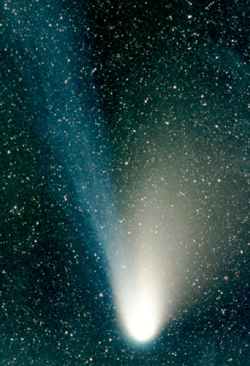 Ya no es necesario madrugar para observar el cometa Hale-Bopp. Desde muchas localidades del hemisferio norte, ahora es posible salir al exterior justo después del atardecer y ver el cometa Hale-Bopp sobre el horizonte noroccidental. Ambos escritores y editores de APOD están impresionados por el brillo que ha alcanzado el cometa Hale-Bopp y por la facilidad con que puede observarse. La coma central es ahora visible desde casi cualquier lugar, incluso desde una ciudad con mucha contaminación lumínica. La cola iónica azul es visible desde ubicaciones con cielos oscuros. La coma del cometa Hale-Bopp rivaliza ahora incluso con la del cometa Hyakutake del año pasado, y la cola parece aumentar en longitud día a día.