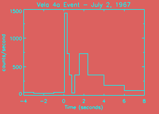 Gamma-Ray Bursts (GRBs) were discovered by accident. In fact, GRBs always seem to be where scientists least expect them. Thirty years ago today, satellites first recorded a GRB. The burst data plotted in this histogram show that the count rate of the gamma-ray instrument abruptly jumped indicating a sudden flash of gamma-rays. The Vela satellites that detected this and other GRBs were developed to test technology to monitor nuclear test ban treaties. With on board sensors they watched for brief X-ray and gamma-ray flashes, the telltale signs of nuclear explosions from the vicinity of the Earth. As intended, the Velas found flashes of gamma-rays - but not from nuclear detonations near Earth. Instead, the flashes came from deep space! Dubbed "cosmic gamma-ray bursts" their origin was then unknown and is still controversial. However, the gamma-ray surprises were not over. Exploring the high-energy sky nearly 25 years later, the orbiting Compton Observatory's Burst and Transient Source Experiment (BATSE), intentionally designed to detect cosmic gamma-ray bursts, was searching for clues to the GRB mystery. But the second burst BATSE recorded did not come from deep space. It came from near the Earth! Don't worry, these terrestrial GRBs are not nuclear bombs exploding. They are a new phenomenon now thought to be related to a recently discovered type of high altitude lightning. Exploring new horizons continues to yield unexpected results.