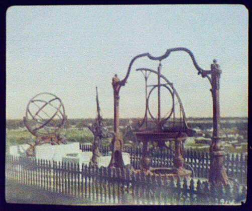Did observatories exist before telescopes? One example that still stands today is the Beijing Ancient Observatory in China. Starting in the 1400s astronomers erected large instruments here to enable them to measure star and planet positions with increasing accuracy. Pre-telescopic observatories throughout the world date back to before recorded history, providing measurements that helped to determine when to plant crops, how to navigate ships, and when religious ceremonies should occur. The above hand-painted lantern slide was originally taken in 1895.