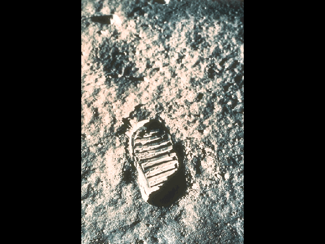 El 20 de julio de 1969, un ser humano pisó la Luna por primera vez. En la imagen se muestra la primera huella lunar. Dicha huella, así como el honor de ser la primera persona en caminar sobre la Luna, pertenecen a Neil Armstrong. Se estima que mil millones de personas en todo el mundo presenciaron ese primer paso de Armstrong, convirtiendo la transmisión en directo desde una cámara montada en el módulo lunar en uno de los programas de televisión más vistos de la historia. Al posarse sobre la Luna, Armstrong declaró: «Es un pequeño paso para (un) hombre, pero un gran salto para la humanidad». Las misiones Apolo a la Luna han sido descritas como el resultado de la mayor movilización tecnológica que el mundo haya conocido.