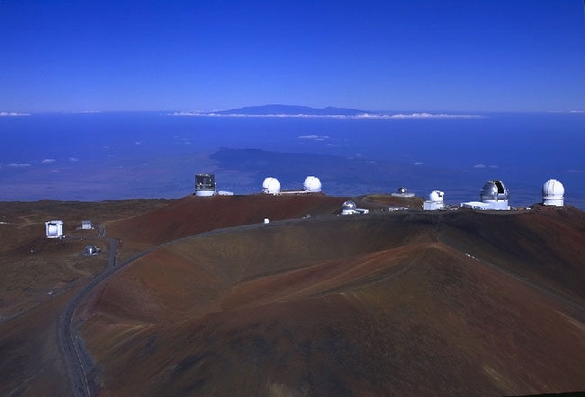 La semana pasada, el nuevo Telescopio Subaru de Japón realizó sus primeras observaciones del cielo. El edificio gris que alberga al Subaru es visible justo a la izquierda de las cúpulas blancas del Keck, cerca del centro de la fotografía. El Subaru es el más reciente dentro de la clase de telescopios ópticos que utilizan un espejo con un diámetro superior a 8 metros. El espejo primario de 8,3 metros del Subaru es el mayor espejo óptico de una sola pieza jamás fabricado, y es tan delgado que su forma precisa puede ser monitoreada y ajustada. El Subaru será propiedad de Japón y operado por dicho país, pero estará ubicado en la cima del Mauna Kea de Hawái, un volcán inactivo famoso por albergar varios de los principales telescopios del mundo.