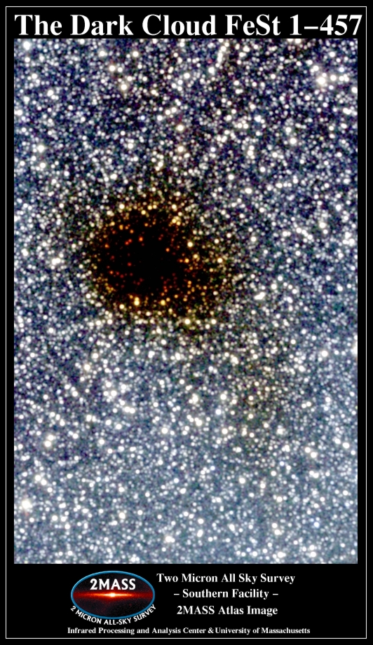 De manera ominosa, presagiando eventos por venir, una nube oscura de polvo opaco se destaca contra un luminoso campo estelar en la Vía Láctea. Catalogada como el objeto de Feitzinger y Stuwe "1-457", esta fuliginosa nebulosa interestelar se encuentra relativamente cerca, posiblemente a solo 1.000 años-luz de distancia. Cerca de su núcleo es lo suficientemente densa como para bloquear casi toda la luz de las numerosas estrellas más distantes visibles hacia la región del centro galáctico. Además de granos de polvo, las nebulosas oscuras que abundan en el plano de nuestra Galaxia probablemente contienen gas interestelar y representan material prima potencial para la formación futura de estrellas.