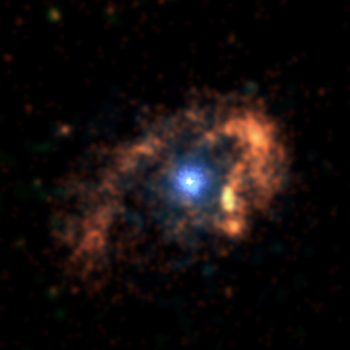 Eta Carinae es uno de los sistemas estelares más luminosos de nuestra Galaxia, irradiando millones de veces más energía que nuestro Sol. Eta Carinae es también uno de los sistemas estelares más extraños que se conocen, ya que ha experimentado grandes variaciones de brillo desde principios del siglo XIX. Recientemente, el Observatorio Chandra observó Eta Carinae en luz de rayos X, añadiendo piezas aún más inesperadas a este enigmático rompecabezas. En la imagen, se ha descubierto un anillo exterior en forma de herradura de aproximadamente dos años-luz de diámetro que rodea un núcleo caliente de tres meses-luz de extensión. Una cosa parece probable: estas estructuras fueron causadas por colisiones de materia expulsada desde el centro a velocidades supersónicas. Continúan las especulaciones sobre que Eta Carinae podría experimentar una explosión de supernova en algún momento durante los próximos mil años.