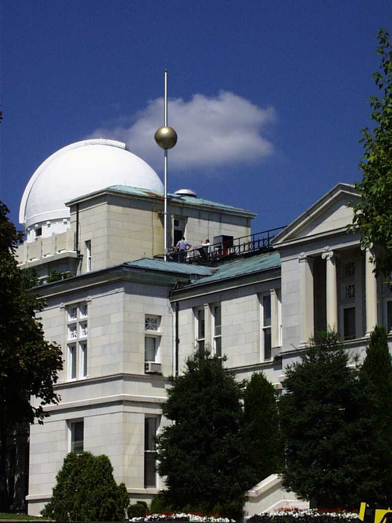 In the nineteenth century, dropping a time ball from a prominent location was a practical way of communicating the time to the surrounding country side and ships at sea. Initiating a fledgling time service for the United States, the U.S. Naval Observatory dropped a time ball at precisely noon every day begining in 1845. At the end of the twentieth century, in commemoration of this traditional method of disseminating time, the U.S. Naval Observatory has installed this ceremonial time ball atop its main building in Washington D.C. Dropping this time ball - at midnight Eastern Standard Time on New Year's Eve - will be the local culmination of a "round-the-world time ball drop" marking the beginning of the year 2000 and the beginning of the Third Millennium in 2001. Meanwhile, don't forget ... this year, in most of the U.S. Daylight Time ends at 2:00 am on Sunday, October 31.