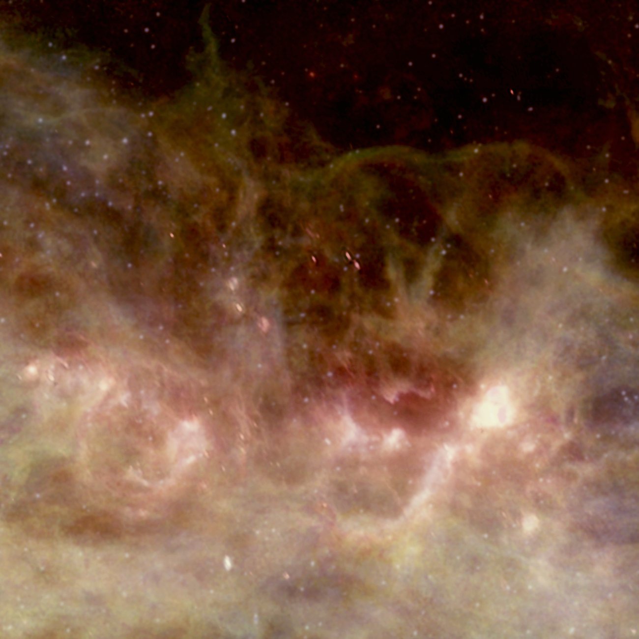Una enorme chimenea que expulsa nubes calientes de gas fuera del plano de nuestra galaxia, la Vía Láctea, ha sido recientemente observada en ondas de radio. El equipo del Canadian Galactic Plane Survey utilizó una red de radiotelescopios para estudiar una región de gas ionizado conocida como W4. En la parte inferior de W4, y en el centro de la imagen superior, se encuentra un cúmulo abierto de estrellas muy joven conocido como OCl 352. La investigación continúa acerca de cómo estas estrellas crearon la superburbuja W4. Las posibles explicaciones incluyen explosiones de supernovas o fuertes vientos estelares provenientes de estas estrellas. Sin embargo, parece evidente que el gas caliente se expande hacia el exterior, siendo canalizado por gas relativamente frío y denso de manera similar a una chimenea. La chimenea W4, que se encuentra a 6.500 años-luz de la Tierra y abarca 250 años-luz de extensión, es visible como el área comparativamente oscura que se extiende hacia la parte superior de la imagen.