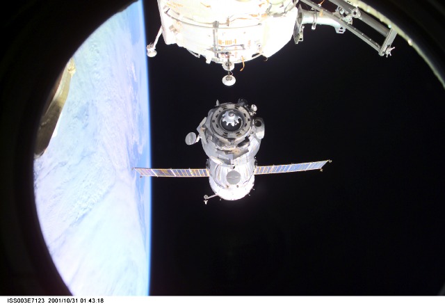 Era hora de regresar a casa. Durante sus ocho días a bordo de la Estación Espacial Internacional (ISS) en órbita terrestre, la ingeniera de vuelo de la ESA Claudie Haigner, el comandante ruso Victor Afanasyev y el ingeniero de vuelo ruso Konstantin Kozeev completaron varios experimentos y entregaron con éxito una nueva embarcación de salvamento. La embarcación de salvamento era en realidad la nueva cápsula Soyuz en la que habían llegado — regresaron a casa en una cápsula Soyuz más antigua que había sido dejada allí seis meses antes. Haigner, experta en reumatología y neurociencia, estudió el desarrollo de embriones de rana bajo condiciones de microgravedad. En la imagen de arriba, del 31 de octubre, su nave espacial Soyuz se separa de la ISS mientras el espacio oscuro y una Tierra azul flotan en el fondo.