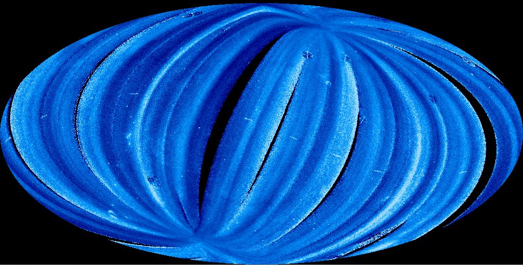 Se suponía que las estrellas más allá del Sol y las galaxias distantes serían indetectables en longitudes de onda ultravioleta extrema. Al menos esa era la sabiduría convencional cuando se comprendió por primera vez que el espacio entre las estrellas está lleno de hidrógeno, un fuerte absorbente de luz ultravioleta extrema. Sin embargo, esta idea fue cuestionada seriamente cuando se hizo evidente que el hidrógeno interestelar tenía una distribución irregular, y la búsqueda para explorar el cielo ultravioleta extremo culminó en 1992 con el lanzamiento del satélite EUVE (Explorador de Ultravioleta Extremo). Un mapa de todo el cielo, basado en los primeros seis meses de operación del satélite, aparece arriba mostrando variaciones de brillo en el cielo EUV en falso color (el norte está hacia arriba). El barrido orbital de EUVE le da a la imagen un aspecto rayado, mientras que otros artefactos instrumentales se ven como cruces y las brechas de datos aparecen oscuras. Múltiples imágenes de la Luna se combinan para formar las líneas discontinuas cortas y brillantes que serpentean a lo largo del centro de la imagen. Las estrellas del cinturón de la constelación familiar de Orión son bastante fáciles de identificar a la izquierda del centro de la imagen. Las operaciones científicas de EUVE cesaron en 2001, pero finalmente detectó casi 1.000 objetos celestes, incluidos más de tres docenas fuera de nuestra propia galaxia. El viaje de descubrimiento de EUVE ha concluido, y la nave se reentró en la atmósfera terrestre ayer aproximadamente a las 11:15 p.m. EST.