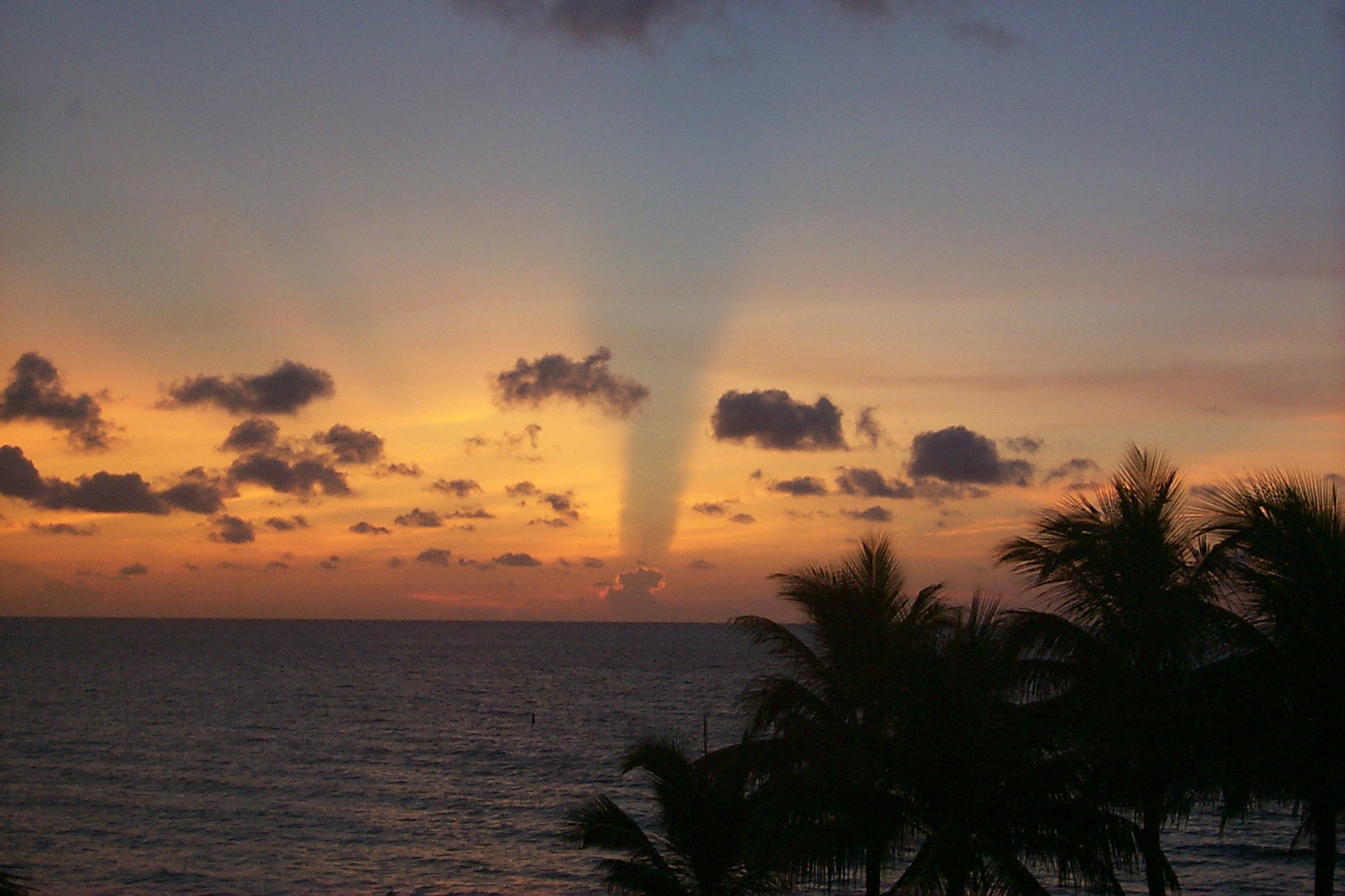 What could cause a ray of dark? Such a ray was caught in spectacular fashion above the Florida Everglades two years ago. The cause is something surprisingly familiar: a shadow. The gold-tinged cloud near the horizon blocks sunlight from reflecting off air behind the cloud, making that column of air appear unusually dark. Cloud shadows can be thought of the inverse of the more commonly highlighted crepuscular rays, where sunlight pours though cloud holes. Another seemingly opposite phenomenon, a sun pillar, involves small ice crystals floating high in the atmosphere.