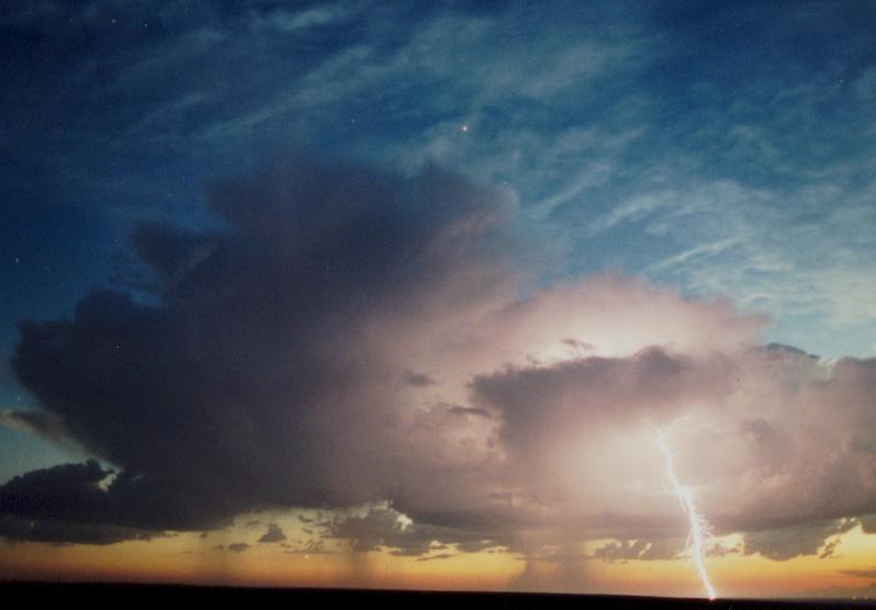 A thunderstorm, lightning, a bright star and a bright planet all graced an evening sky for a short while near Bismarck, North Dakota, USA two weeks ago. Thick thunderclouds from a passing storm are the origin of a strong cloud to ground lightning strike. Small areas of rain darken portions of the orange sunset, visible at the horizon above the vast prairie. The planet Venus peeks below the clouds on the lower left of the image. Blue sky shines high above the distant storm, streaked with high white cirrus clouds. The bright star Arcturus glitters near the image top, just left of center. Just a few minutes later, only a memory and this picture remained.