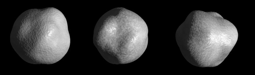 A day is just under 11 minutes long on 1998 KY26, a 30 meter wide, fast-spinning, water-rich asteroid. This computer simulated view of its lumpy surface has a resolution of about 3 meters and is based on radar and optical observations (click on the image for a series of surface views). The observations were made shortly after the discovery of the diminutive world which passed within about 800,000 kilometers of Earth, or about 2 times the Earth-Moon distance, in June of 1998. Around 10 million asteroids of similar size may exist in orbits that also come near Earth's, but little is known about them. However, spinning so fast, tiny 1998 KY26 can not be a loose conglomerate held together by gravity alone. Instead it is likely a monolithic chunk fragmented from a larger asteroid. As the radar and optical data suggest 1998 KY26 has a high water content, this relatively accessible asteroid could be a literal oasis for future space explorers.