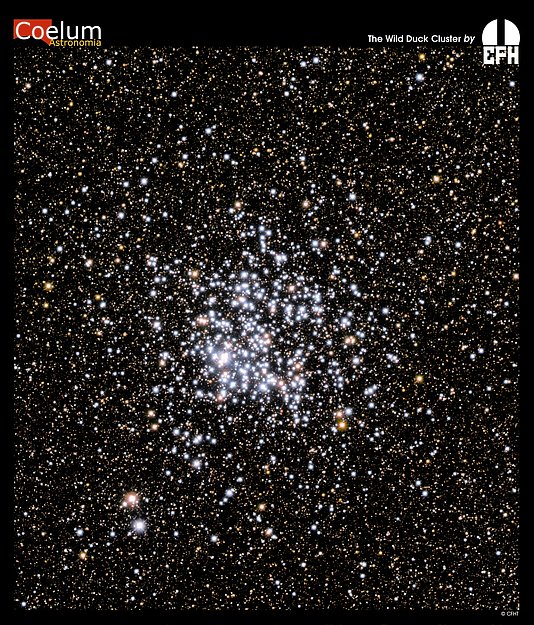 Muchas estrellas como nuestro Sol se formaron en cúmulos abiertos. El cúmulo abierto fotografiado arriba, M11, contiene miles de estrellas y se encuentra a poco más de cinco mil años luz de distancia. Las estrellas en este cúmulo se formaron todas juntas hace aproximadamente 250 millones de años. Las jóvenes estrellas brillantes en M11 aparecen azules. Los cúmulos abiertos, también llamados cúmulos galácticos, contienen menos estrellas y más jóvenes que los cúmulos globulares. También a diferencia de los cúmulos globulares, los cúmulos abiertos generalmente se encuentran confinados al plano de nuestra Galaxia. M11 es visible con binoculares hacia la constelación de Scutum.
