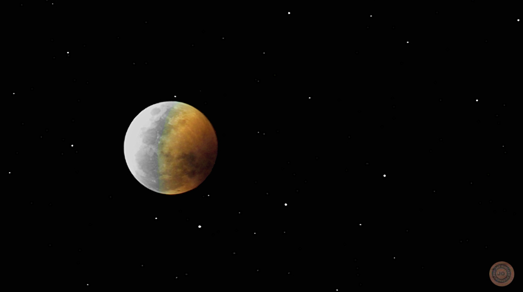Semisombreada por la Tierra, la Luna adquiere una apariencia notable frente a un campo de estrellas en esta intrigante fotografía de teleobjetivo tomada durante una fase parcial del eclipse lunar de la semana pasada. La imagen no es un compuesto, pero ha sido mejorada digitalmente para destacar características que abarcan un amplio rango de brillantez. En la Luna misma, los detalles de la superficie son visibles tanto en la porción iluminada sin eclipsar bajo la luz solar directa como en la región eclipsada de color cobre mucho más oscura. También mucho más tenue que la superficie iluminada de la Luna, el campo estelar de fondo, junto con la iluminación inusual, parece contribuir a una percepción tridimensional inquietante del orbe lunar. El astrofotógrafo canadiense Jay Ouellet tomó la fotografía desde l'Observatoire de la Découverte en Val Belair, un suburbio de la Ciudad de Quebec, donde aproximadamente 200 observadores del cielo se reunieron para disfrutar de la exposición celeste.