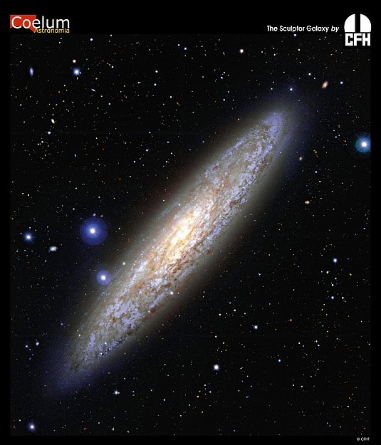NGC 253 is a normal spiral galaxy seen here almost sideways. It is the largest member of the Sculptor Group of Galaxies, the nearest group to our own Local Group of Galaxies. NGC 253, pictured above, appears visually as one of the brightest spirals on the sky, and is easily visible in southern hemisphere with a good pair of binoculars. The type Sc galaxy is about 10 million light years distant. NGC 253 is considered a starburst galaxy because of high star formation rates and dense dust clouds in its nucleus. The energetic nuclear region is seen to glow in X-ray and gamma-ray light.