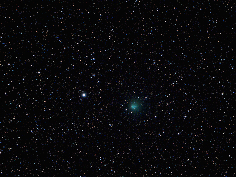 Ha vuelto. Cada 3,3 años, el Cometa Encke se acerca nuevamente a nuestro Sistema Solar interior. Descubierto oficialmente en 1786, el Cometa Encke realiza su 59.ª vuelta documentada, lo que lo convierte en uno de los cometas más estudiados del cielo. Misteriosamente, el Cometa Encke debería haber sido descubierto hace milenios, ya que probablemente se volvió lo suficientemente brillante como para ser visible a simple vista muchas veces durante los últimos miles de años. La trayectoria elíptica del Cometa Encke se extiende desde más allá de la órbita de Marte hasta dentro de la órbita de Mercurio. Pasó relativamente cerca de la Tierra el 17 de noviembre y alcanzará su máxima proximidad al Sol el 29 de diciembre. Las observaciones recientes sitúan al Cometa Encke con un brillo de magnitud visual seis a principios de diciembre, lo que lo coloca justo al borde de la visibilidad a simple vista. En la imagen superior, la mancha difusa del Cometa Encke periódico fue fotografiada a través de un pequeño telescopio el 29 de noviembre desde Arkansas, EE.UU.