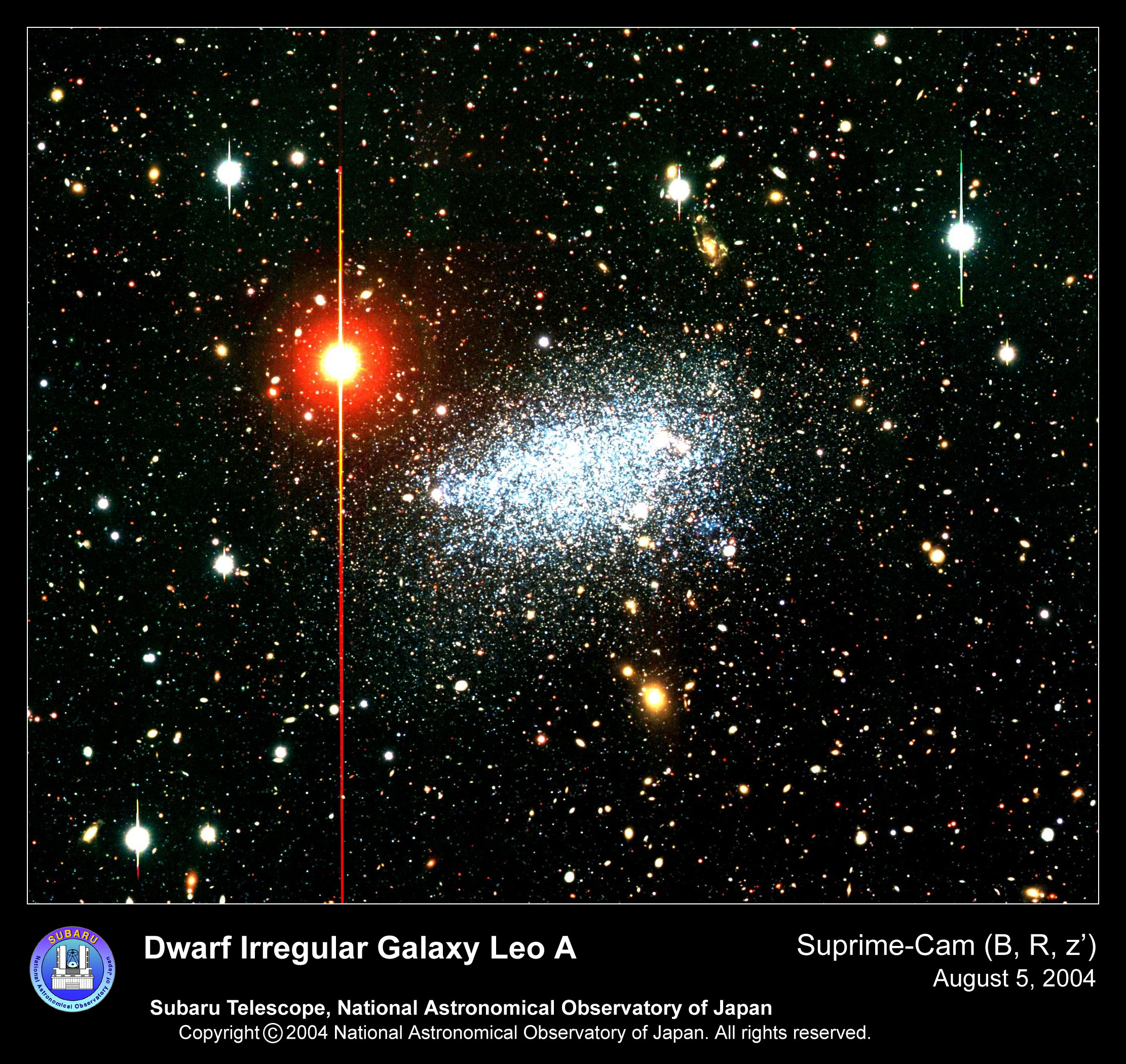 ¿Por qué esta pequeña galaxia no es simple? La imagen anterior y las observaciones contemporáneas de la pequeña galaxia cercana Leo A se suponía que mostrarían que tiene una estructura simple. Ahora se sabe que Leo A es una galaxia irregular enana, uno de los tipos de galaxias más comunes en el universo y un tipo que probablemente es un bloque de construcción de galaxias más masivas como nuestra Vía Láctea. En general, las galaxias más grandes se ha demostrado recientemente que continuamente consumen y están compuestas principalmente de muchas de las galaxias satélites más pequeñas que las han rodeado. La sorprendente complejidad de Leo A indica que ella, y posiblemente muchas galaxias pequeñas, tienen historias de formación casi tan complejas como las de galaxias grandes. Leo A abarca aproximadamente 10,000 años luz y se encuentra a unos 2.5 millones de años luz de distancia hacia la constelación de Leo.