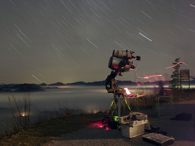 If there were a window nearby to the distant universe -- would you look through it? Quite possibly, there is, in the form of a small telescope. A local skykeeper could be a relative or a stranger and is frequently proud to show off the sky free of charge. Through a window called an eyepiece, on a dark cloudless night, you can see clusters of stars, rings around Saturn, glowing nebulas of gas, craters on the Moon, and galaxies across the universe. The technology to create this window -- and the secret sky it reveals -- was unknown only 400 years ago. Modern sky opportunities may occur this Saturday, Astronomy Day, at local amateur astronomy clubs, universities, science centers, or planetariums. Pictured above is a small telescope being deployed at picturesque Hohe Wand, about 50 kilometers south of Vienna, Austria. The spin of the Earth is visible in the above photo as the long star trails.
