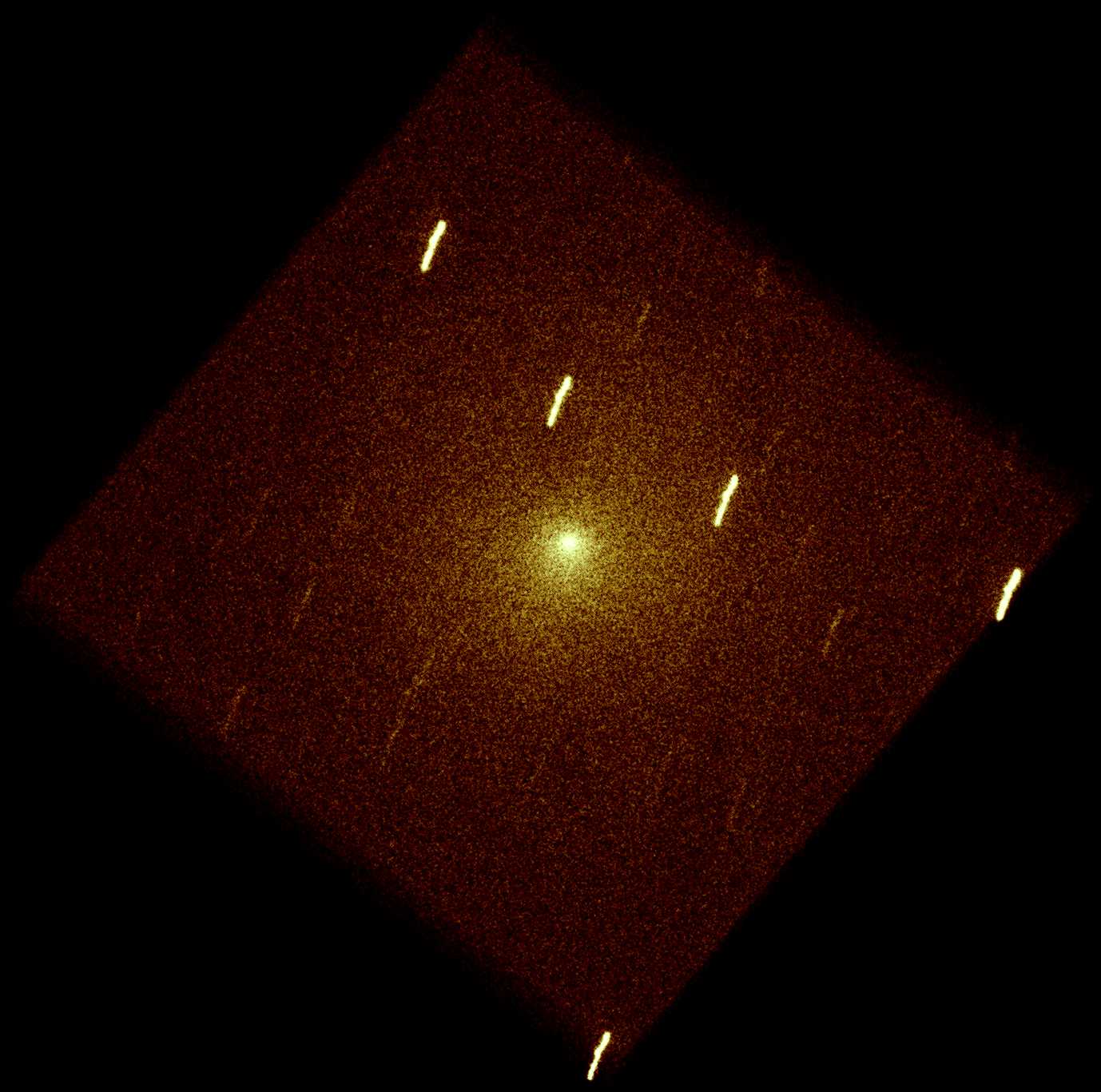 El cometa Tempel 1 está destinado a colisionar con la sonda impactadora de la nave Deep Impact de la NASA alrededor de las 1:52 a.m. EDT del 4 de julio (en otras zonas horarias). Las cámaras en la sonda impactadora y en la nave de sobrevuelo capturarán imágenes detalladas del evento, que se espera produzca un cráter en la superficie del núcleo del cometa. Por supuesto, los telescopios en órbita alrededor de la Tierra y los telescopios terrestres también estarán observando, incluyendo instrumentos en el satélite Swift normalmente utilizado para detectar ráfagas de rayos gamma en el universo distante. El telescopio ultravioleta de Swift registró esta imagen de Tempel 1 el 29 de junio. Dado que la imagen está registrada en el cometa, las estrellas de fondo aparecen como trazos cortos. ¿Desea seguir el encuentro? La cobertura mediática que documenta el evento y las posibilidades de observar el cometa con telescopios pequeños se pueden encontrar a través del sitio web de Deep Impact. Las imágenes actualizadas también estarán disponibles desde el Observatorio Nacional de Kitt Peak.