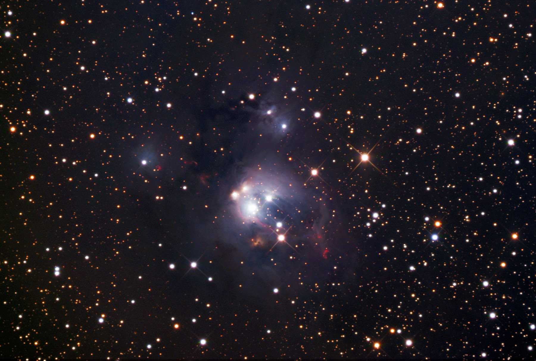Los soles jóvenes aún se encuentran dentro de la polvorosa NGC 7129, a unos 3.000 años luz de distancia hacia la real constelación de Cefeo. Aunque estas estrellas tienen una edad relativamente tierna, solo alrededor de un millón de años, es probable que nuestro propio Sol se haya formado en una guardería estelar similar hace unos cinco mil millones de años. Lo más notable en la impresionante imagen son las hermosas nubes de polvo azulado que reflejan la luz estelar juvenil, pero las formas de medialuna de color rojo profundo más pequeñas también son marcadores de objetos estelares jóvenes energéticos. Conocidos como objetos Herbig-Haro, su forma y color son característicos del gas de hidrógeno incandescente impulsado por chorros que emanan de las estrellas recién nacidas. Con el tiempo, el gas natal y el polvo de la región se dispersarán, y las estrellas se alejarán entre sí conforme el cúmulo suelto orbita el centro de la Galaxia. NGC 7129 tiene aproximadamente 10 años luz de diámetro.