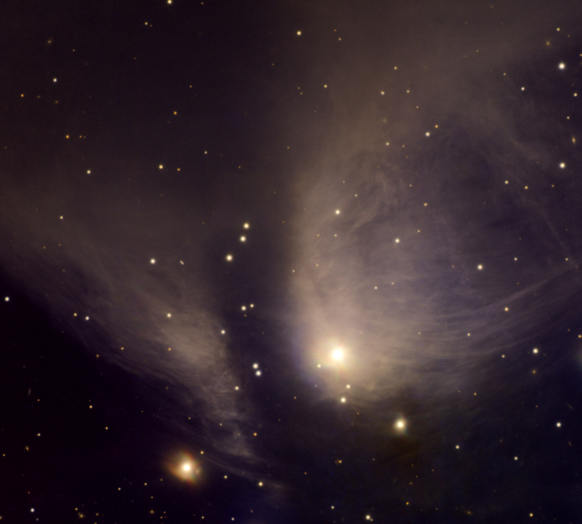 A star emerges from its natal cloud of gas and dust in this tantalizing portrait of RY Tauri, a small stellar nursery at the edge of the Taurus molecular cloud, a mere 450 light-years away. Illuminating a region that spans about 2/3 of a light-year, the youthful, central star is large, cool, and known to vary in brightness. Still collapsing, in a few million years the star's winds will likely clear out the gas and dust clouds, as it settles down to become a steady main sequence star like the Sun. What remains could well include a planetary system. The image data for RY Tauri is from the Gemini Observatory, on Mauna Kea, Hawaii -- based on observations proposed by the Astronomy Club of Dorval, Quebec.