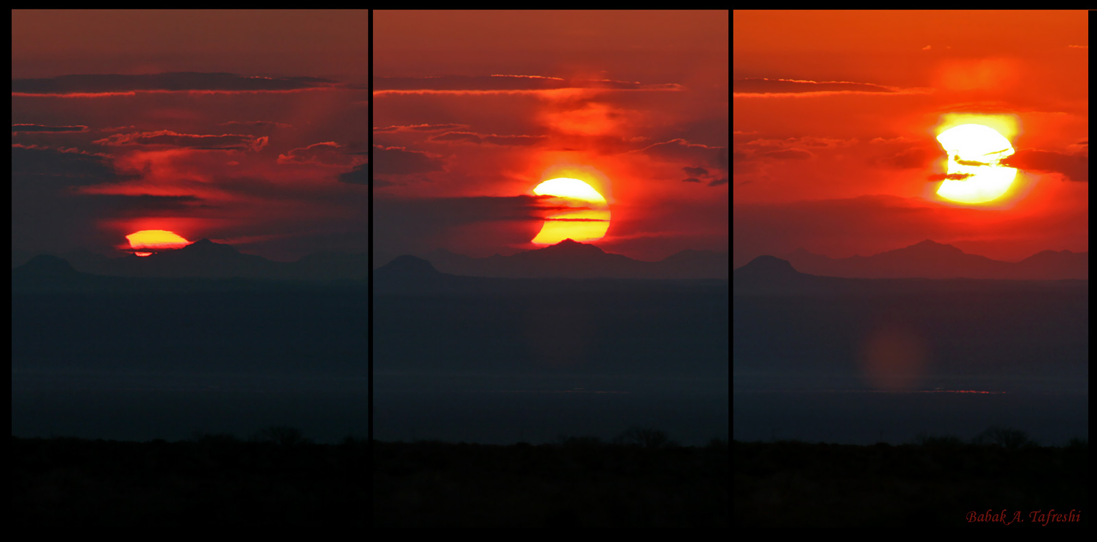 Clouds covered the eastern horizon on Monday, when the Sun rose over the expansive Touran Wildlife Reserve in northeastern Iran. Of course, on that day the Moon rose with the Sun, creating a widely enjoyed partial solar eclipse. Along with a mountainous horizon, the cloud cover lent a dramatic aspect to this eclipse sunrise and made it possible for astronomer Babak Tafreshi to record these telephoto images without using a filter. Advancing north in planet Earth's sky, the Sun itself was also approaching the equinox, the astronomical marker for the first day of northern hemisphere spring and the beginning of Norouz, the Persian New Year.