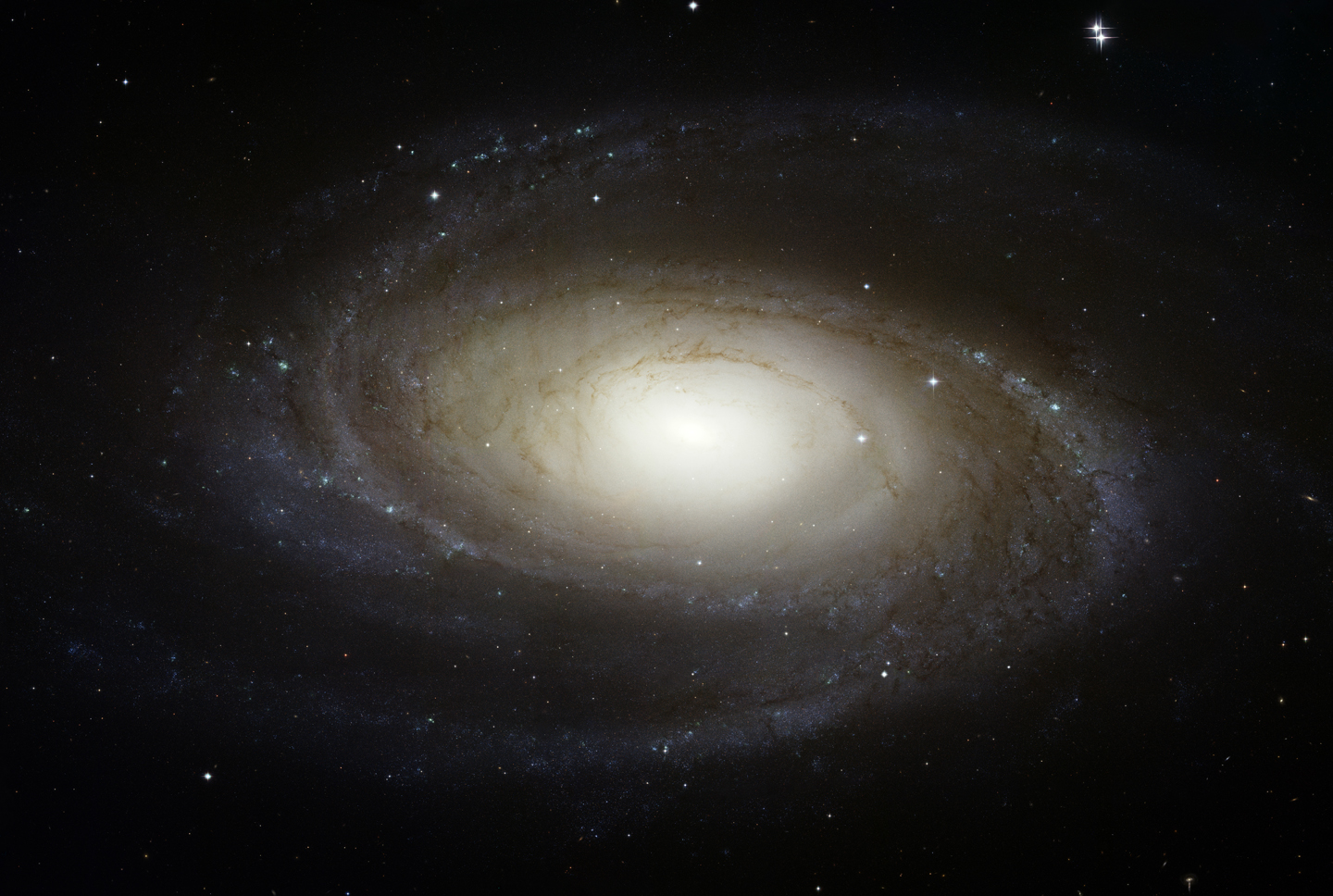 El Telescopio Espacial Hubble ha resuelto estrellas individuales en una espectacular nueva imagen de la galaxia espiral cercana M81. Este logro es similar al de las imágenes históricas de Edwin Hubble obtenidas con el telescopio Hooker de 100 pulgadas del Monte Wilson en los años veinte, que resolvieron estrellas en la galaxia vecina M31. Edwin Hubble fue capaz de utilizar estrellas variables Cefeidas individuales para demostrar que M31 no era gas en movimiento cercano, sino una galaxia completa como nuestra Vía Láctea. La imagen anterior en luz visible, tomada por el Telescopio Espacial Hubble, se está utilizando en conjunto con imágenes captadas en ultravioleta por Galex, infrarrojo por Spitzer y rayos X con Chandra para estudiar cómo se han formado y desaparecido estrellas a lo largo de la historia de M81. La luz tarda aproximadamente 12 millones de años en llegar a nosotros desde M81. M81 es visible con binoculares hacia la constelación de la Osa Mayor (Ursa Major).