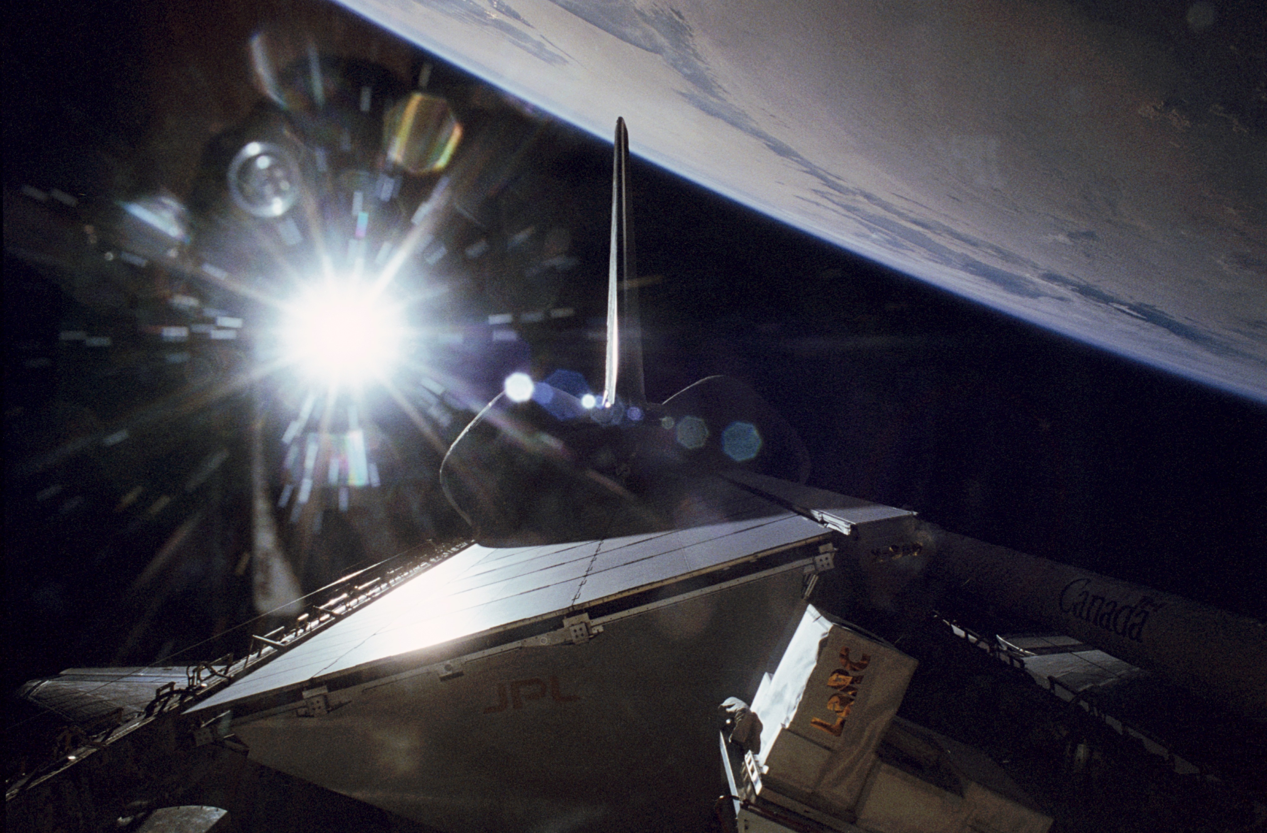 Hoy, el Sol cruza el ecuador celeste dirigiéndose hacia el sur a las 0951 UT. Conocido como equinoccio, este evento astronómico marca el primer día del otoño en el hemisferio norte y de la primavera en el sur. Equinoccio significa noche igual y con el Sol en el ecuador celeste, los habitantes de la Tierra experimentarán casi 12 horas de luz solar y 12 horas de oscuridad. Por supuesto, para quienes se encuentran en el sur, los días se alargarán a medida que el Sol avance más alto en el cielo mientras se aproxima el verano. Unas pocas semanas después del Equinoccio de Septiembre de 1994, la tripulación del transbordador espacial Endeavour capturó esta imagen del Sol posado sobre el limbo terrestre. El resplandor ilumina la cola vertical del Endeavour (apuntando hacia la Tierra) junto con equipo de radar en la bahía de carga.