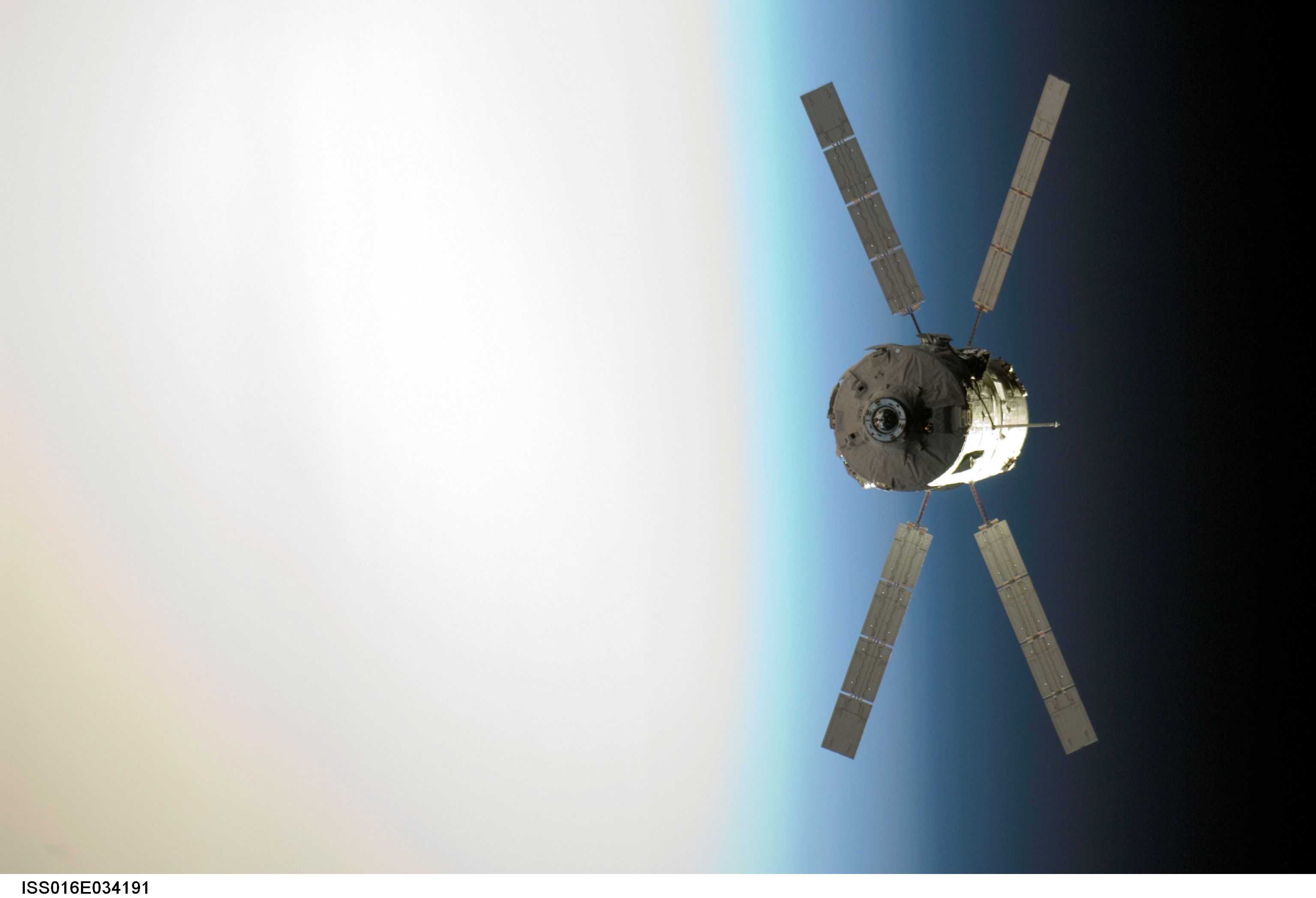 The bright edge of planet Earth fades into the darkness of space in the background of this view of Jules Verne on an extraordinary voyage. Snapped last Monday, the picture shows the European Space Agency's Automated Transfer Vehicle (ATV), named for the 19th century science fiction writer and visionary, rehearsing its autonomous docking capability on approach to the International Space Station. Using a laser guided rendezvous system, the Jules Verne docked smoothly and safely with the orbiting station on Thursday, delivering 7,500 pounds of equipment, supplies, and fuel. The cylindrical body of the robotic cargo spacecraft is 4.5 meters in diameter and 10.3 meters long, with solar arrays spanning 22.3 meters. Jules Verne is scheduled to remain docked until August, providing a reboost for the space station before the ATV is deorbited.