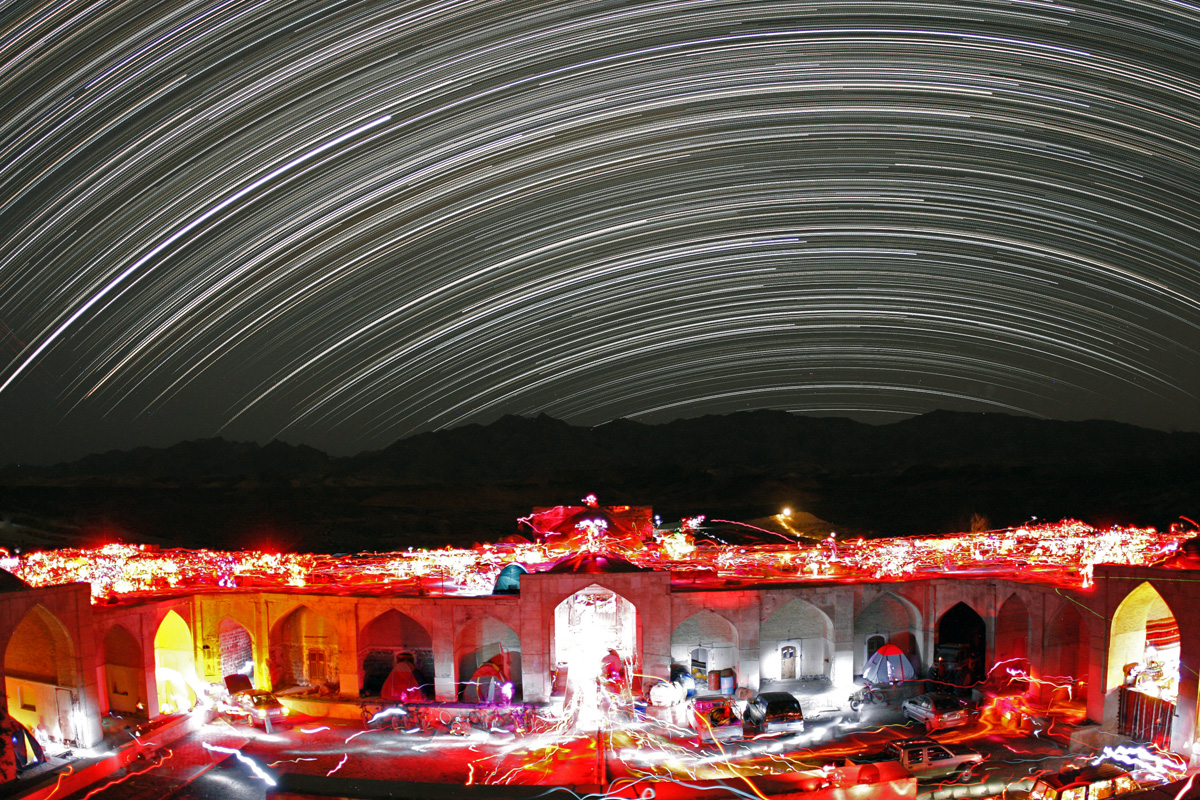 Gripped by an astronomical spring fever, many northern hemisphere stargazers embark on a Messier Marathon. Completing the marathon requires viewing all 110 objects in 18th century French astronomer Charles Messier's catalog in one glorious dusk-to-dawn observing run. As daunting as it sounds, there are often favorable weekend dates for completing the task that fall on nearly moonless nights near the March equinox. This colorful, six hour long time exposure of a group dedicated to running this year's Messier marathon includes celestial star trails along with terrestrial lighting trails from about 200 amateur astronomers. It was recorded from the isolated, ancient Bahram Palace in northern Iran's Kavir National Park. Astronomer and former Messier Marathon organizer for the ASIAC Babak Tafreshi offers this intriguing time-lapse movie (2MB wmv file) of the event.