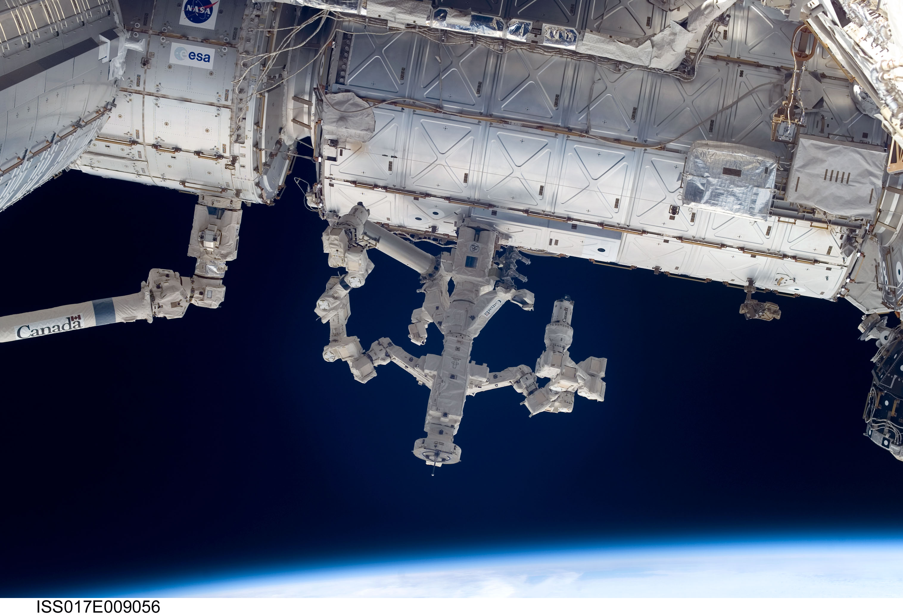 ¿Qué está haciendo allí el robot espacial más complejo del mundo? La semana pasada, Dextre fue fotografiado moviéndose sobre el Módulo de Laboratorio Destiny de la Estación Espacial Internacional (ISS), completando tareas previas al despliegue del laboratorio científico presurizado Kibo de Japón. Dextre, abreviatura de Manipulador Diestro de Propósito Especial construido por Canadá, tiene brazos de tres metros de largo y puede acoplarse herramientas eléctricas como dedos. Detrás de Dextre se extiende la oscuridad del espacio, mientras que la Tierra se asoma sobre la cabeza de Dextre. El segmento del laboratorio Kibo que se desplegó durante el viaje del transbordador espacial Discovery a la ISS puede presurizarse y contiene bastidores de experimentos científicos que se utilizarán para explorar muchas cosas, incluyendo cómo las plantas se sostienen contra la gravedad y cómo se podría impedir que el agua se congele en células bajo microgravedad.