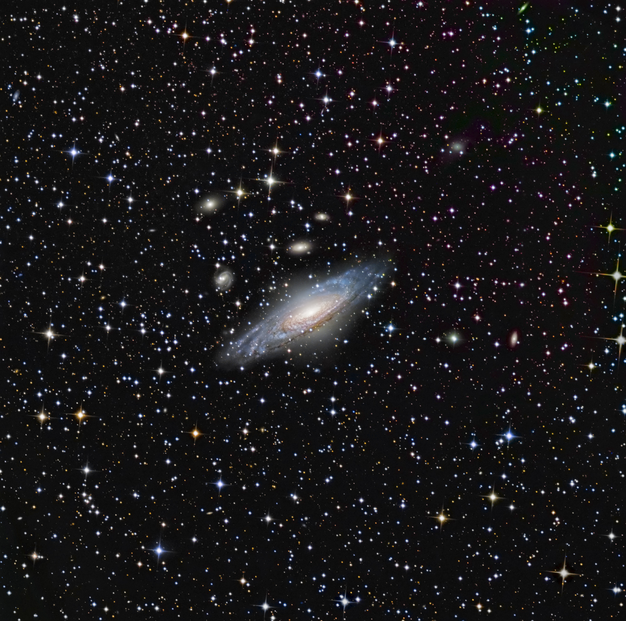 Big, beautiful spiral galaxy NGC 7331 is often touted as an analog to our own Milky Way. About 50 million light-years distant in the northern constellation Pegasus, NGC 7331 was recognized early on as a spiral nebula and is actually one of the brighter galaxies not included in Charles Messier's famous 18th century catalog. Since the galaxy's disk is inclined to our line-of-sight, long telescopic exposures often result in an image that evokes a strong sense of depth. The effect is further enhanced in this well-framed view by the galaxies that lie beyond this gorgeous island universe. The background galaxies are about one tenth the apparent size of NGC 7331 and so lie roughly ten times farther away. Their strikingly close alignment on the sky with NGC 7331 occurs just by chance. The visual grouping of galaxies is also known as the Deer Lick Group.