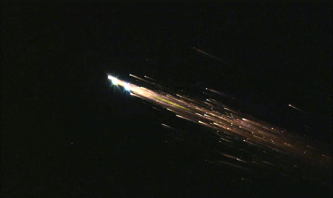 Nineteenth century science fiction author Jules Verne wrote visionary works about Extraordinary Voyages including tales of space flight and the story of a journey From the Earth to the Moon. Fittingly, the European Space Agency's newly developed Automated Transfer Vehicle (ATV), a robotic spacecraft intended to deliver cargo to the International Space Station (ISS) was named in his honor and successfully docked with the ISS earlier this year. When the Jules Verne ATV was undocked and deorbited last month, its safely controlled reentry over the Pacific Ocean was followed by astronomers in order to make detailed comparisons of the actual event with computer models of spacecraft reentry and breakup in the atmosphere. This dramatic image of the fragmenting, 13-ton spacecraft is a high definition video frame recorded from NASA's DC-8 Airborne Laboratory. The observations were part of the joint ESA/NASA Jules Verne Multi-Instrument Aircraft Campaign.
