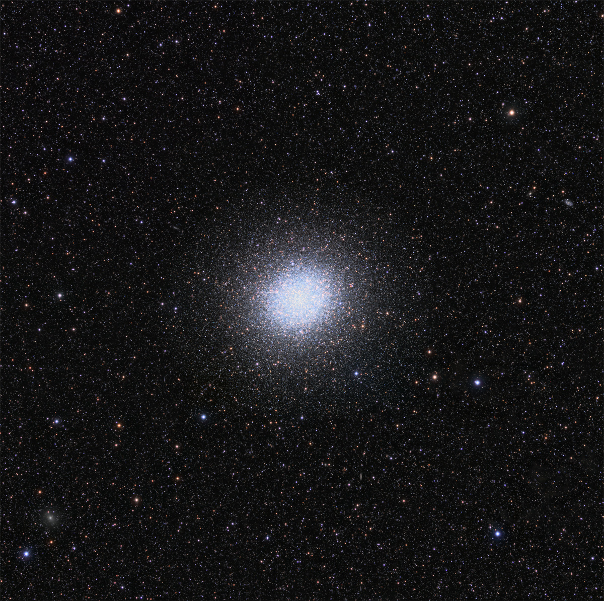 This huge ball of stars predates our Sun. Long before humankind evolved, before dinosaurs roamed, and even before our Earth existed, ancient globs of stars condensed and orbited a young Milky Way Galaxy. Of the 200 or so globular clusters that survive today, Omega Centauri is the largest, containing over ten million stars. Omega Centauri is also the brightest globular cluster, at apparent visual magnitude 3.9 it is visible to southern observers with the unaided eye. Cataloged as NGC 5139, Omega Centauri is about 18,000 light-years away and 150 light-years in diameter. Unlike many other globular clusters, the stars in Omega Centauri show several different ages and trace chemical abundances, indicating that the globular star cluster has a complex history over its 12 billion year age.