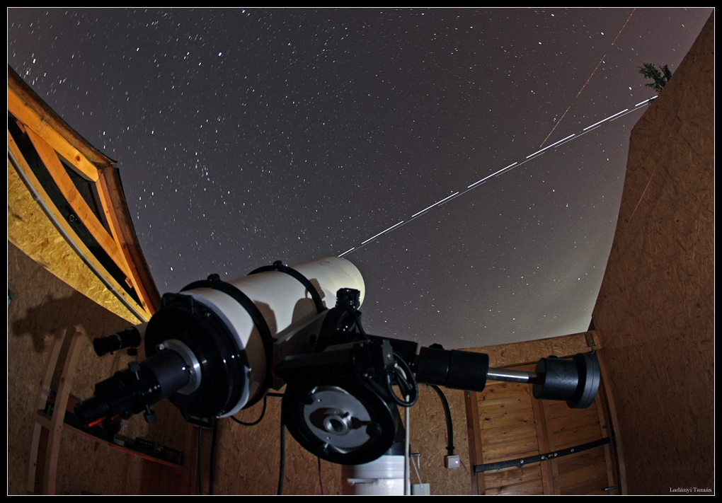 Hoy comienza 100 Horas de Astronomía, un proyecto fundamental del Año Internacional de la Astronomía 2009 que celebra el 400 aniversario del primer estudio telescópico del cielo realizado por Galileo. Durante del 2 al 5 de abril, se han programado muchas actividades públicas en todo el mundo como parte del proyecto, comenzando con el evento inaugural de hoy en el Instituto Franklin en Filadelfia. El evento contará con una de las dos telescopios restantes de Galileo y será transmitido en directo por internet. Por supuesto, el cielo observado por Galileo aún puede apreciarse hoy en día, con instrumentos mucho más avanzados y ampliamente disponibles. Pero esta vista del cielo desde un observatorio privado en Veszprém, Hungría, también incluye objetos que Galileo no vio cuando miraba la noche. Registrada el 26 de marzo, la imagen captura las trayectorias dobles de la Estación Espacial Internacional (la más brillante) y del transbordador Discovery en órbita baja alrededor de la Tierra, así como la estela de un avión en vuelo.