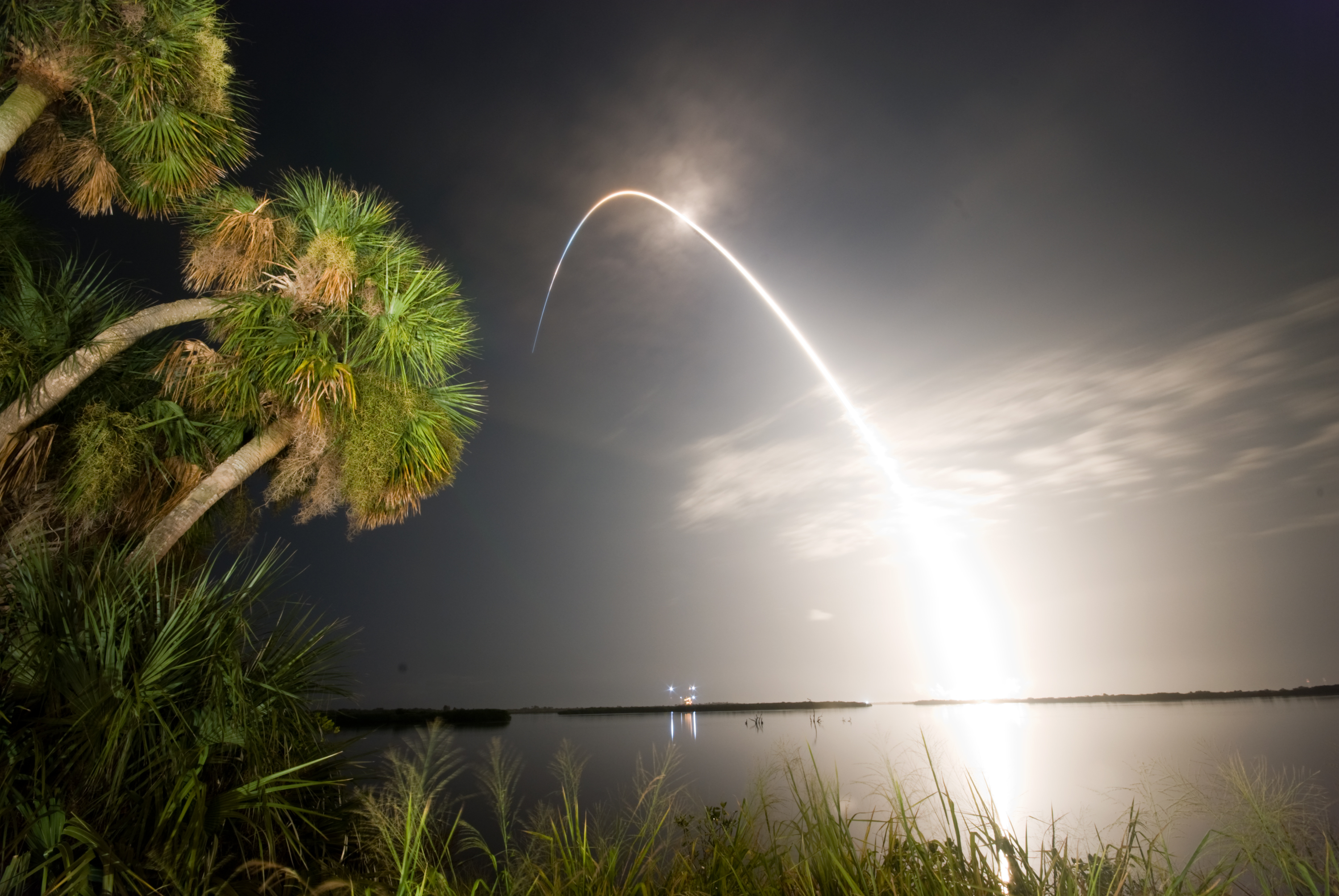 Un minuto antes de la medianoche hora EDT, el viernes 28 de agosto, el transbordador espacial Discovery comenzó un largo arco hacia un cielo nublado. Tras el lanzamiento, se capturó una brillante y notablemente colorida estela en esta exposición de tiempo desde el lugar de observación del Río Plátano, mirando hacia el este hacia el lanzador 39A en el Centro Espacial Kennedy. En la misión STS-128, Discovery se acopló a la Estación Espacial Internacional el domingo por la noche. La misión de 13 días intercambiará miembros de la tripulación de la estación espacial y entregará más de 7 toneladas de suministros y equipo. Por supuesto, el equipo incluye la cinta de correr de Resistencia Externa de Carga Operativa Combinada (COLBERT).