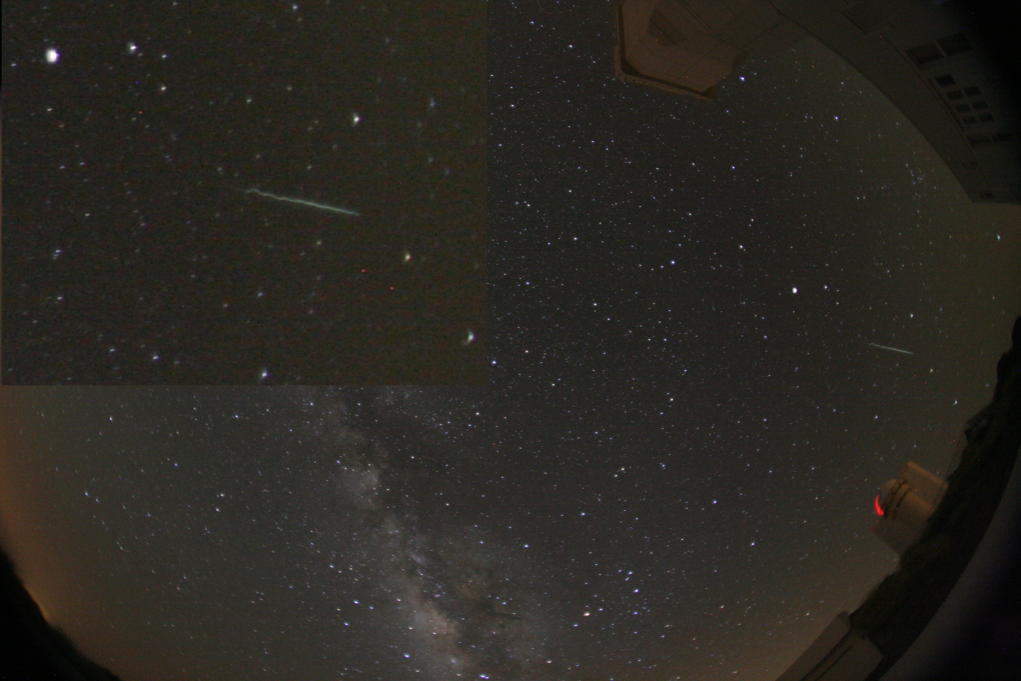 Did this meteor take a twisting path? No one is sure. Considered opinions are solicited. Meteors, usually sand sized grains that originate in comets, will typically disintegrate as they enter the Earth's atmosphere. A fast moving meteor ionizes molecules in the Earth's atmosphere that subsequently glow when they reacquire electrons. Meteor paths that twist noticeably have been noted before, and even photographed, but attributing such behavior to the motion of the meteor itself and neither the wind-blown meteor train nor the observer remains somewhat controversial. The above meteor, imaged two weeks ago streaking over the Teide Observatory in Tenerife, Canary Islands, appears to swagger as much as several minutes of arc, which the experienced astrophotographer did not think could be attributed to drifting of the resulting train or motion of the camera mount. If truly an indication of a twisted meteor path, an underlying reason could be the pictured meteor was markedly non-spherical in shape, non-uniform in composition, or electrically charged. Non-uniform meteors, for example, may evaporate more on one side than another, causing a rotating meteor to wobble. Understanding meteors is important partly because meteors are candidates to have seeded Earth with prebiotic molecules that allowed for the development of life.