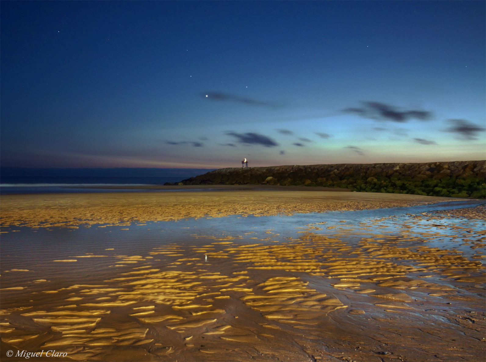 A veces, es divertido compartir el cielo. Aunque podría parecer que los dos entusiastas del cielo en la loma comparten solo una luna creciente entre ellos, tres planetas brillantes también se alzan frente a ellos. El punto más brillante del cielo es el planeta Venus, mientras que Marte, de color rojizo, flota sobre él, y Saturno brilla a su derecha. En primer plano aparecen pintorescas acumulaciones de arena de la playa de Costa da Caparica, antes de las aguas reflectantes del Océano Atlántico. La noche elegida para observar planetas fue especialmente buena, ya que la lluvia de meteoros Perseidas también alcanzaba su pico. Afortunadamente, este cielo de la tarde no fue único en Almada, Portugal, el jueves pasado, sino visible para entusiastas del cielo en todo el mundo la semana pasada. Todos estos planetas permanecerán visibles al atardecer esta semana, aunque Venus se hundirá en el horizonte a medida que se acerque al Sol poniente.