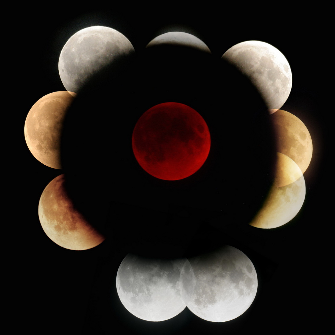 La sombra interior oscura de la Tierra se llama la umbra. En forma de cono que se extiende al espacio, tiene una sección transversal circular y es más fácilmente visible durante un eclipse lunar. Sin embargo, la sección transversal completa es más grande que el tamaño angular de la Luna en las etapas de un eclipse. Aun así, esta cuidadosa composición ilustra la extensión completa de la sombra circular utilizando imágenes de ambos eclipses parciales y totales que pasan por diferentes partes de la umbra. Las imágenes abarcan los años 1997 a 2011, capturadas diligentemente con las mismas ópticas desde Voronezh, Rusia. A lo largo de la parte inferior y superior se muestran etapas de los eclipses lunares parciales de septiembre de 2006 y agosto de 2008, respectivamente. En la imagen inferior derecha, la Luna entra en la umbra para el eclipse total de septiembre de 1997. En la parte inferior izquierda, la Luna sale de la umbra después de la totalidad en mayo de 2004. A la derecha, centro y izquierda, se muestran etapas del eclipse total de junio de 2011, incluyendo la fase central, de color rojo profundo. Durante el breve eclipse lunar parcial visible solo desde el hemisferio oriental, la Luna apenas rozará el borde inferior de la umbra.