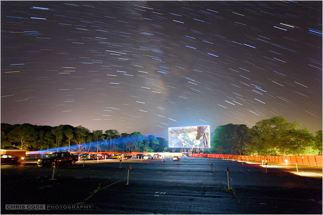 Colorful stars trail through this late summer, night skyscape from Cape Cod, Massachusetts. The picture was composed by stacking 12 consecutive 1 minute long digital camera exposures to follow the trails, a reflection of our fair planet's daily rotation. It also records faint clouds of the Milky Way in the clear sky, stretching above a local drive-in movie theater. In fact, watching movies from cars at the drive-in was once a more common night time activity. But while the stars still shine, drive-in theaters have faded from the American landscape over the decades since the 1950s. Still, this recent scene includes a short exposure made as the projector beamed a space age image to the movie screen, and drive-in skygazers watched a view of the Earth below the International Space Station, under the stars above.