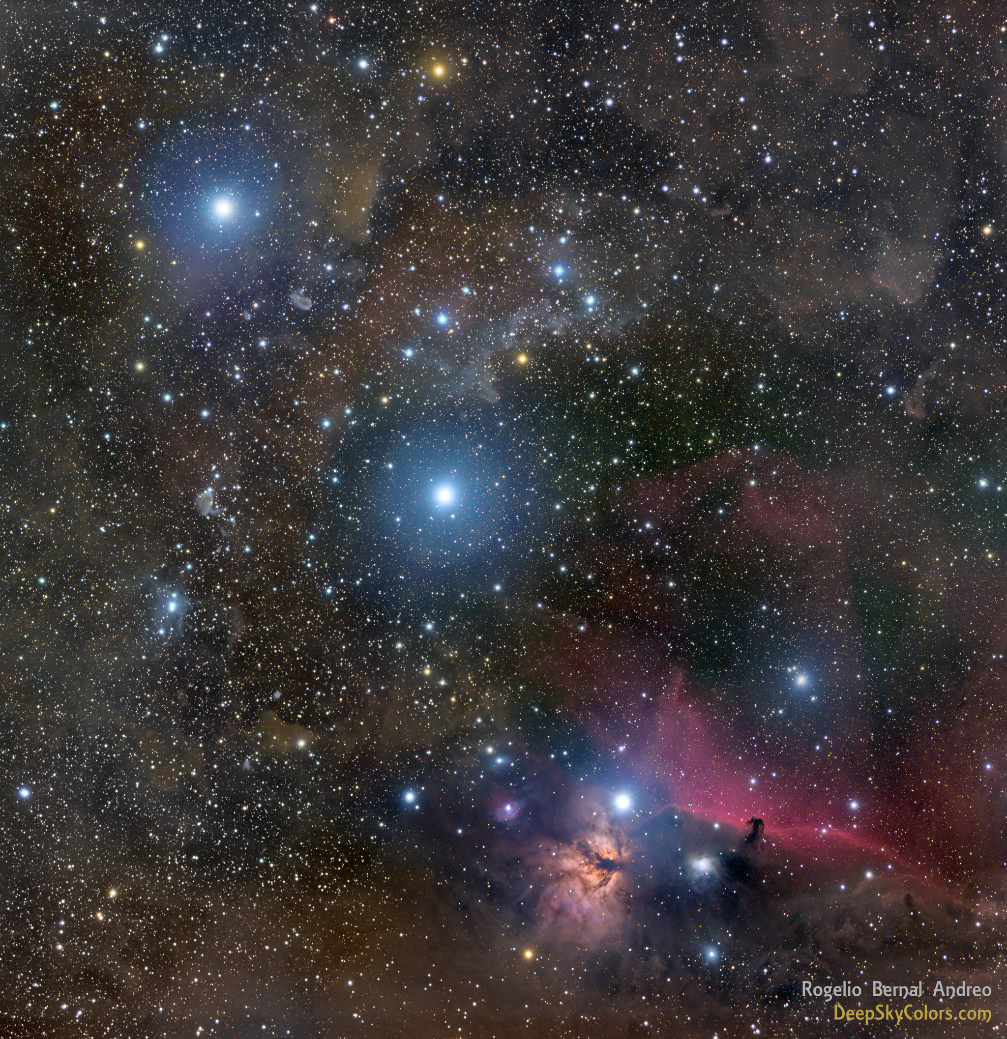 Crédito: NASA, ESA, y el equipo del telescopio espacial Hubble Alnitak, Alnilam y Mintaka son las brillantes estrellas azules que se ven de este a oeste (de la parte inferior derecha a la superior izquierda) a lo largo de la diagonal en esta magnífica vista cósmica. Conocidas también como la Cinturilla de Orión, estas tres estrellas supergigantes azules son más calientes y mucho más masivas que el Sol. Se encuentran a unos 1.500 años luz de distancia, nacidas de las bien estudiadas nubes interestelares de Orión. De hecho, las nubes de gas y polvo que flotan en esta región tienen formas intrigantes y, en algunos casos, sorprendentemente familiares, incluyendo la famosa Nebulosa Caballo de Troya y la Nebulosa Llama cerca de Alnitak en la parte inferior derecha. La famosa Nebulosa de Orión en sí misma se encuentra fuera del borde derecho de este campo estelar colorido. La imagen, bien encuadrada y de campo amplio, abarca aproximadamente 4 grados en el cielo. Ver: La lluvia de meteoros Geminidas