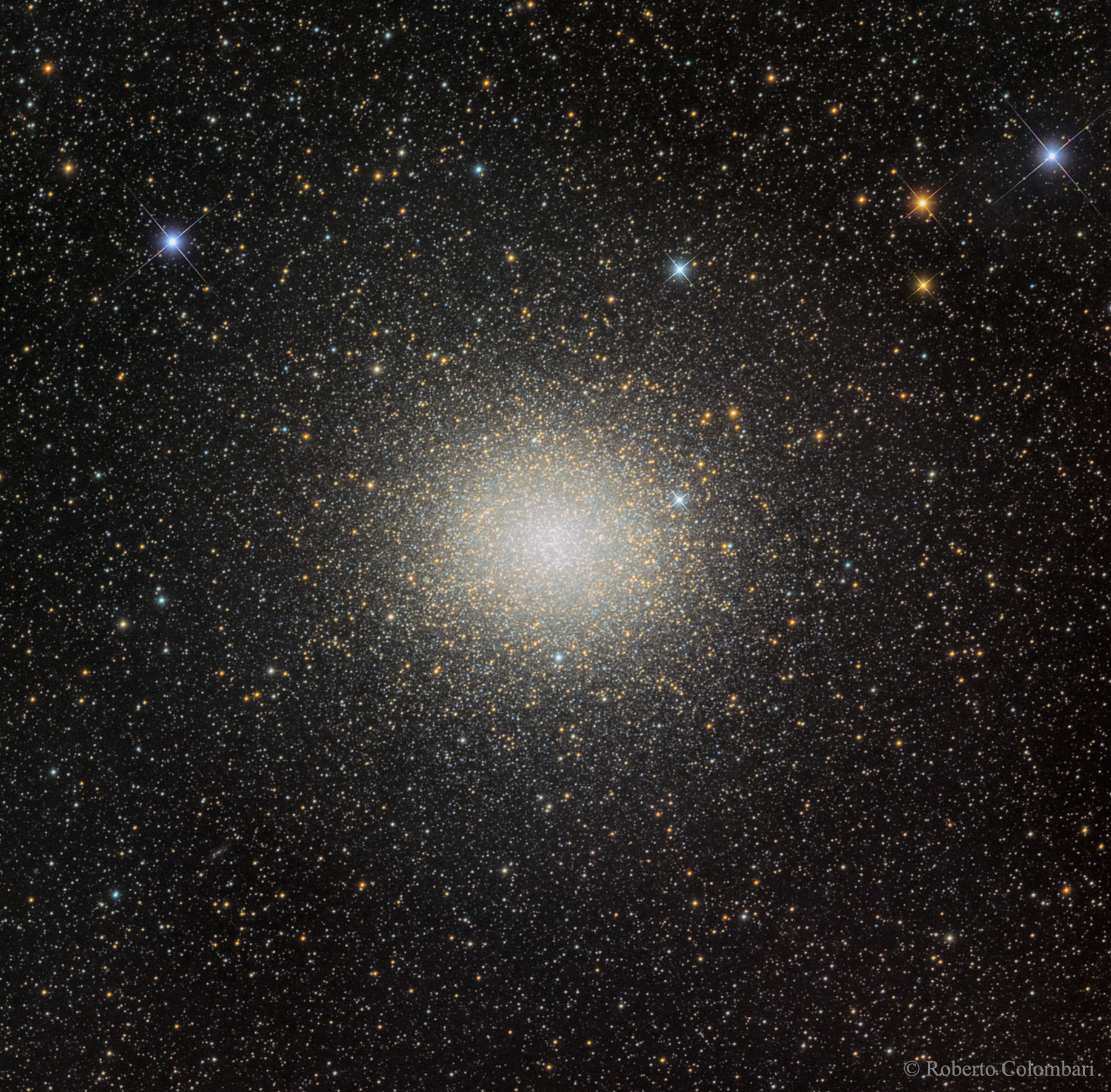 This huge ball of stars predates our Sun. Long before humankind evolved, before dinosaurs roamed, and even before our Earth existed, ancient globs of stars condensed and orbited a young Milky Way Galaxy. Of the 200 or so globular clusters that survive today, Omega Centauri is the largest, containing over ten million stars. Omega Centauri is also the brightest globular cluster, at apparent visual magnitude 3.9 it is visible to southern observers with the unaided eye. Cataloged as NGC 5139, Omega Centauri is about 18,000 light-years away and 150 light-years in diameter. Unlike many other globular clusters, the stars in Omega Centauri show several different ages and trace chemical abundances, indicating that the globular star cluster has a complex history over its 12 billion year age.