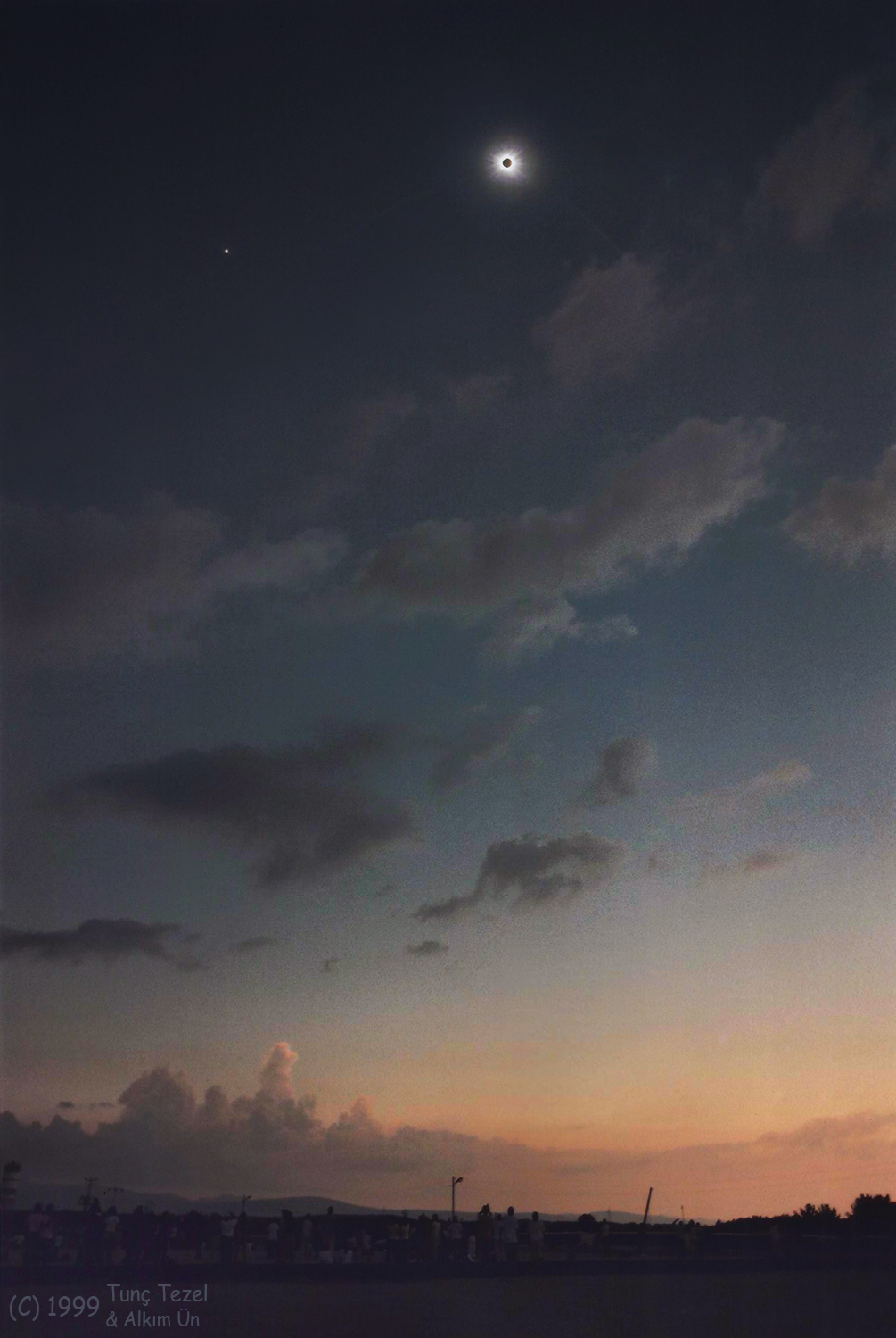 Un cielo oscurecido muestra el resplandor del planeta Venus, la Luna Nueva en silueta y la brillante corona solar en esta imagen de un eclipse solar total. Compuesta a partir de imágenes simultáneas tomadas con lente teleobjetivo y ángulo amplio, fue captada en el camino de la totalidad hace 18 años, el 11 de agosto de 1999, cerca de Kastamonu, Turquía. Ese particular eclipse solar pertenece al Saros 145. Conocido históricamente a partir de observaciones de la órbita lunar, el ciclo Saros predice cuándo el Sol, la Tierra y la Luna volverán a la misma geometría para un eclipse solar (o lunar). El Saros tiene un período de 18 años, 11 y 1/3 días. Los eclipses separados por un período Saros pertenecen a la misma serie numerada de Saros y son muy similares. Sin embargo, el camino de la totalidad para eclipses solares consecutivos en el mismo Saros se desplaza por la Tierra, ya que el planeta gira durante 8 horas adicionales durante el día fraccionario del ciclo. Por lo tanto, el próximo eclipse solar del Saros 145 también será un eclipse total, y el estrecho camino de la totalidad se extenderá de costa a costa por Estados Unidos el 21 de agosto de 2017.