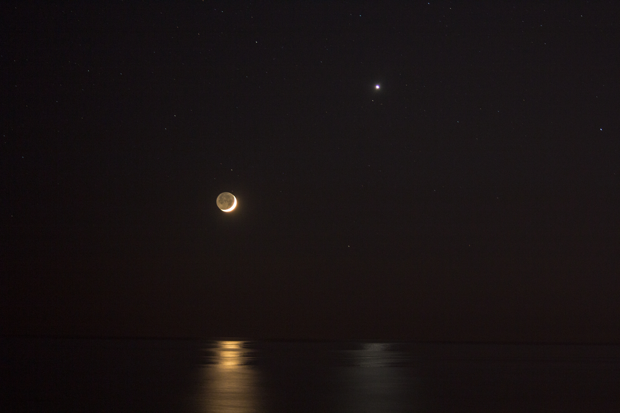 Posing near the western horizon, a brilliant evening star and slender young crescent shared reflections in a calm sea last Thursday after sunset. Recorded in this snapshot from a beach at Santa Marinella near Rome, Italy, the lovely celestial conjunction of the two brightest beacons in the night sky could be enjoyed around the world. Seaside, light reflected by briefly horizontal surfaces of the gentle waves forms the shimmering columns across the water. Similar reflections by fluttering atmospheric ice crystals can create sometimes mysterious pillars of light. Of course, earthlight itself visibly illuminates the faint lunar night side.