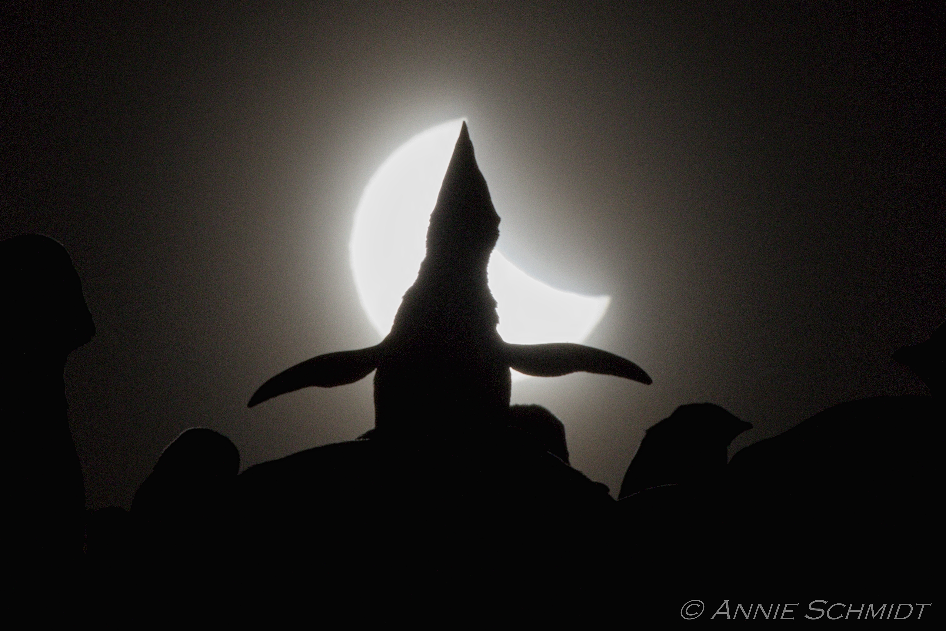 Un pingüino Adelie macho realizó esta Vocalización Extática en silueta durante el eclipse solar del 4 de diciembre, el último eclipse de 2021. Por supuesto, su Vocalización Extática es una exhibición especial que los pingüinos machos utilizan para reclamar su territorio y anunciar su condición. El territorio de este pingüino, en el cabo Crozier, Antártida, se encuentra en una de las colonias más grandes de pingüinos Adelie. La colonia ha sido estudiada por investigadores durante más de 25 años. Desde allí, el eclipse del pasado diciembre fue aproximadamente del 80 por ciento total cuando se vio en su fase máxima, mientras la sombra de la Luna cruzaba el continente más austral de la Tierra.