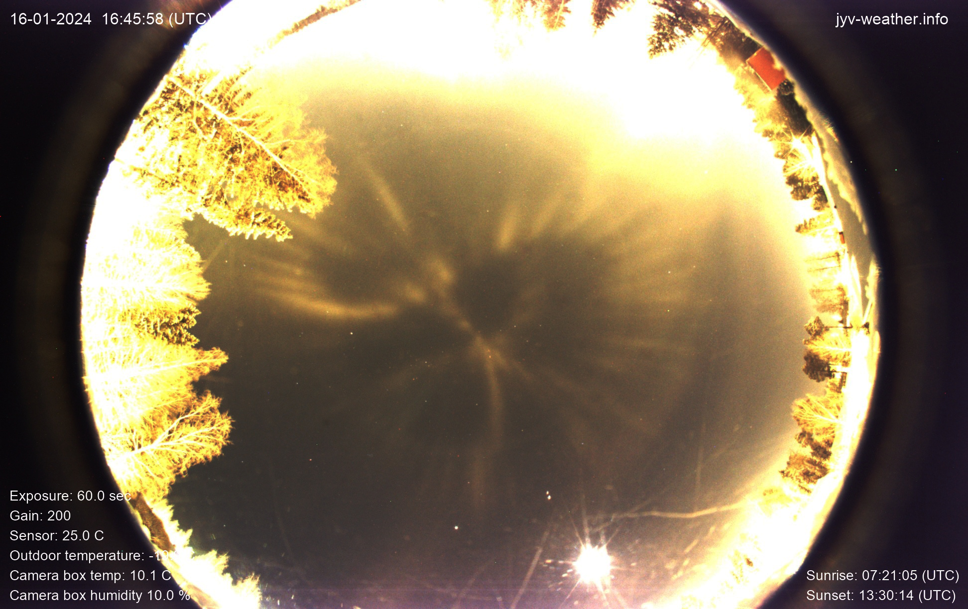 Es posible que no reconozcas inmediatamente este mapa de una vecindad de Jyväskylä, Finlandia, en el planeta Tierra. Pero probablemente sea porque el mapa fue proyectado en el cielo nocturno y capturado con una cámara de cielo completo el 16 de enero. La temperatura registrada en esa noche de invierno en el norte fue de alrededor de menos 20 grados Celsius. Mientras se formaban cristales de hielo en la atmósfera sobre la cabeza, las luces de las calles que desbordaban iluminación hacia el cielo produjeron columnas de luz visibles, cuyo aspecto etéreo se debía a reflexiones especulares en las superficies planas de los cristales que se movían. Por supuesto, las columnas de luz proyectadas trazan un mapa de las calles localmente iluminadas, aunque invertidas de derecha a izquierda en la vista de la cámara que mira hacia arriba. Este mapa de columnas de luz fue visto flotando durante horas en la noche de Jyväskylä.