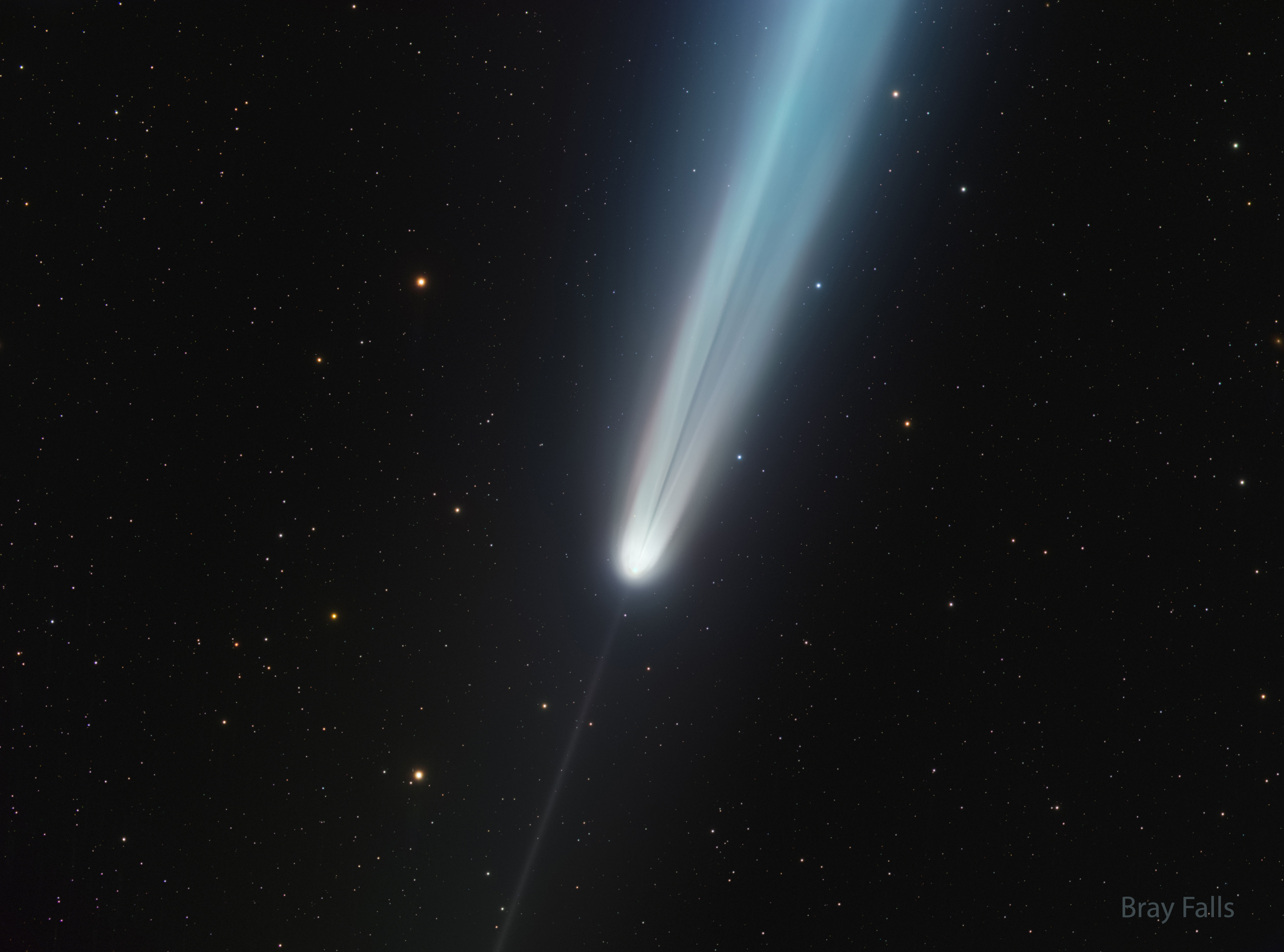 What created an unusual dark streak in Comet Tsuchinshan-Atlas's tail? Some images of the bright comet during mid-October not only caught its impressively long tail and its thin anti-tail, but a rather unexpected feature: a dark streak in the long tail. The reason for the dark streak is currently unclear and a topic of some debate. Possible reasons include a plume of dark dust, different parts of the bright tail being unusually superposed, and a shadow of a dense part of the coma on smaller dust particles. The streak is visible in the featured image taken on October 14 from Texas, USA. To help future analyses, if you have taken a good image of the comet that clearly shows this dark streak, please send it in to APOD. Comet Tsuchinshan–ATLAS has now faded considerably and is returning to the outer Solar System. Gallery: Comet Tsuchinshan-ATLAS in 2024